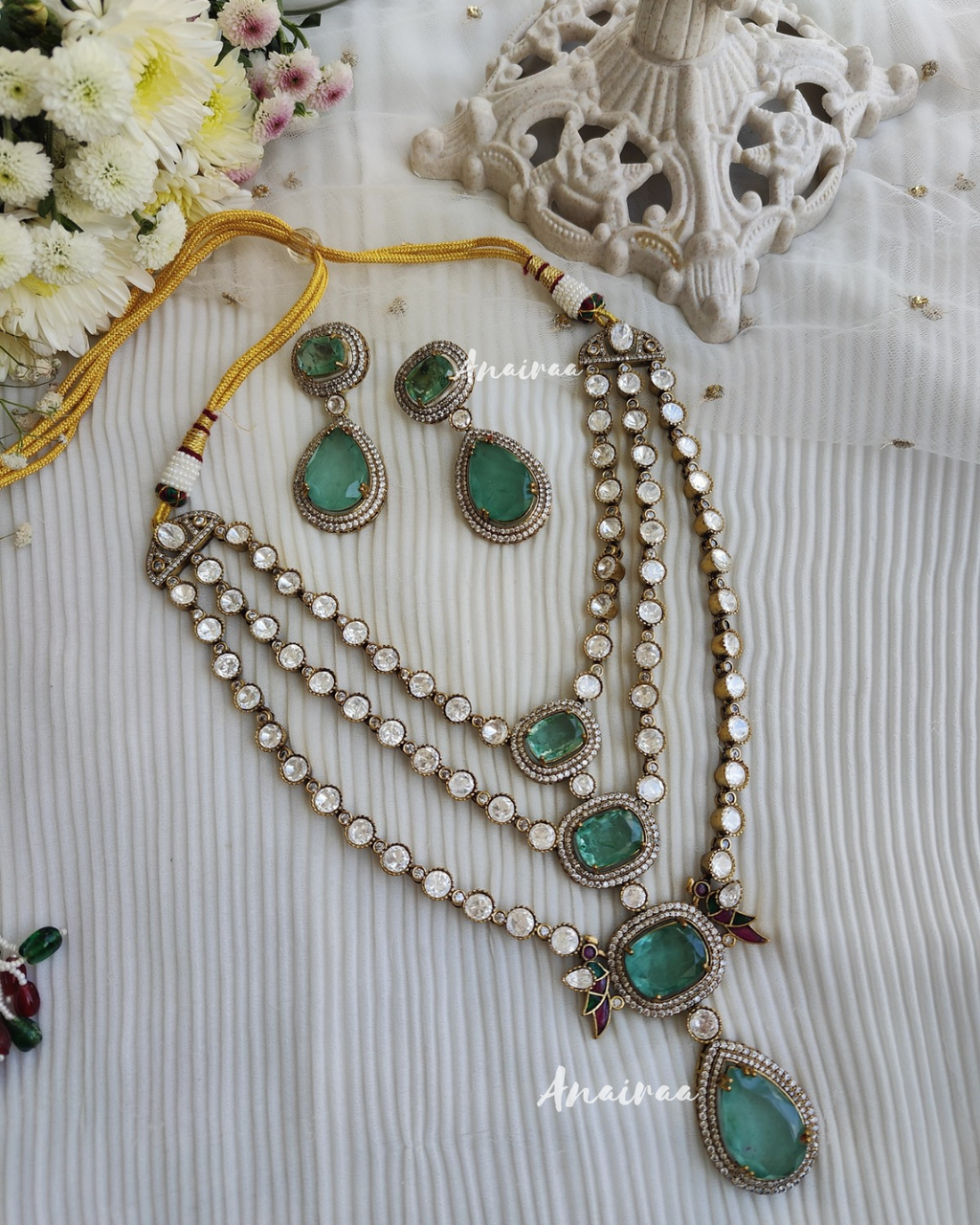 Kundan long necklace with emrald beads