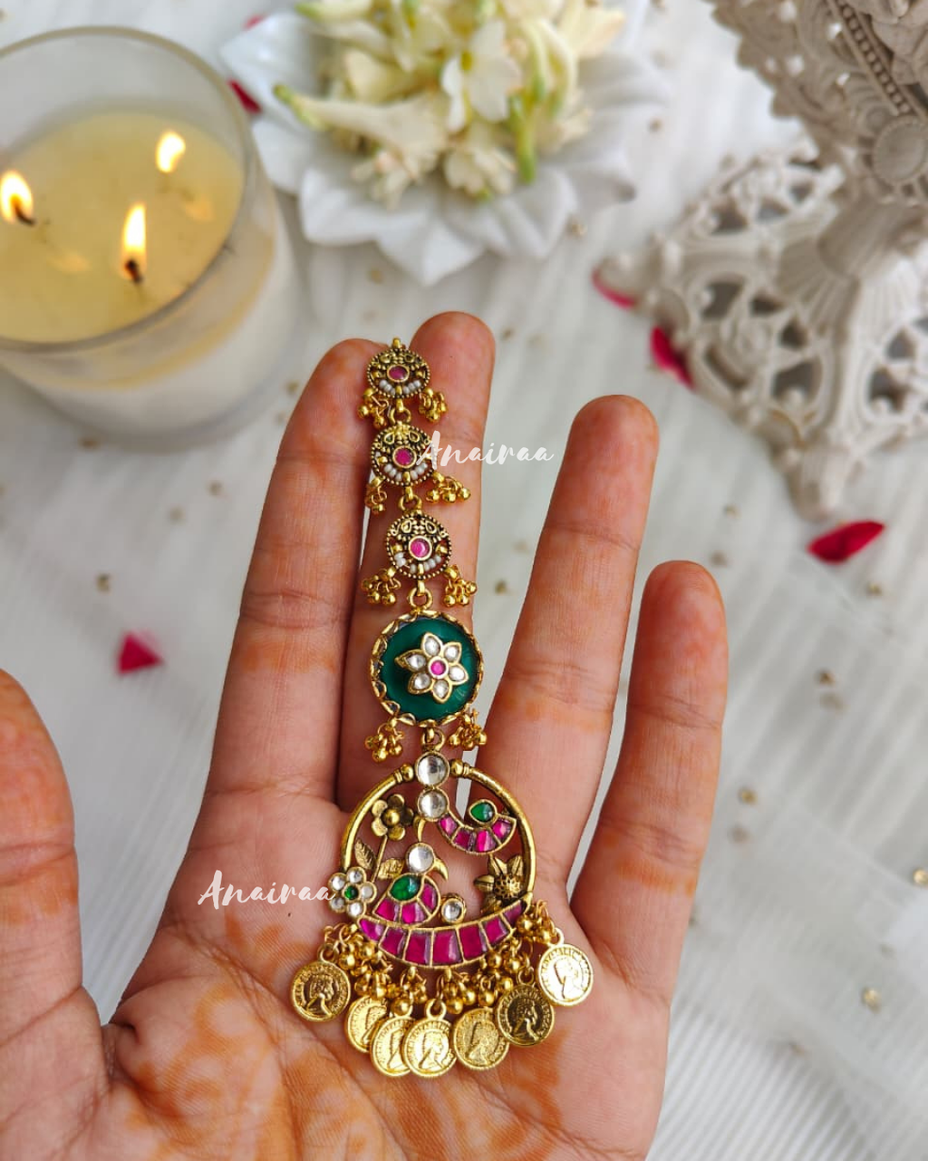 Paachi kundan floral maangtikka