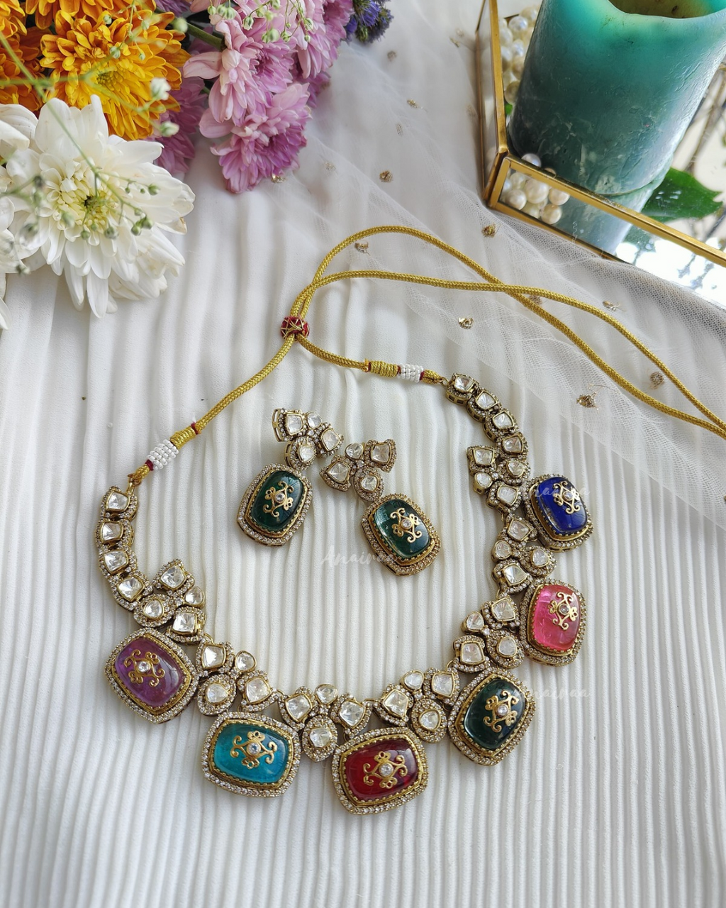 Uncut navratan polki necklace set